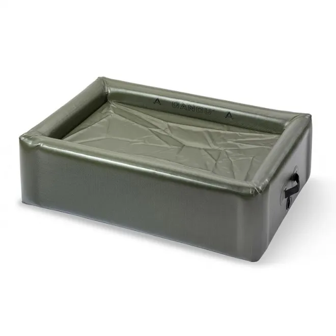 Abhakmatte der Superlative! Den fischschonenden Umgang nach dem Fang haben wir uns als oberste Priorität auf die Agenda geschrieben und entwickelten dieses multifunktionale High-End-Modell für professionelle Carp Care in zweiter Generation. Gerade bei Frank Schmidts extremen Einsätzen und der Jagd nach der Großmutter aller Großkarpfen ein seit vielen Jahren bewährtes System. Ausgestattet mit einem Bajonettventil und hochwertigstem, faserverstärkten HDPVC, ist das Canou 2 (Einkammersystem) ein wirklich ultra stabiles Konstrukt. Auch bei den Nähten wurde sehr großer Wert darauf gelegt, dass diese sauber und professionell verarbeitet wurden. Die Ecken wurden hierbei extra verstärkt. Alles zusammen in einem sehr kompakten und kleinen Transportmaß in der mitgelieferten Transporttasche. Das Anaconda Canou 2 besteht aus zwei verschiedenen Ebenen. Die flache Seite für ausgedrillte Fische und ein schnelles Handling oder die tiefe Seite, welche mit Wasser befüllt werden kann. Hier liegt der Fisch sicher in einem herabgesetzten Bereich und kann weder durch Schlagen noch Springen entweichen. Dank der seitlich angebrachten Tragegriffe, kann man das Canou 2 auch mit einem sich darin befindlichen Karpfen in der Position verändern.