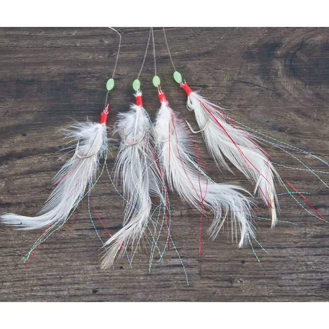 Makrelenvorfach mit 4 Cristal Haken und rot/silber Tinsel inklusive EVA Board