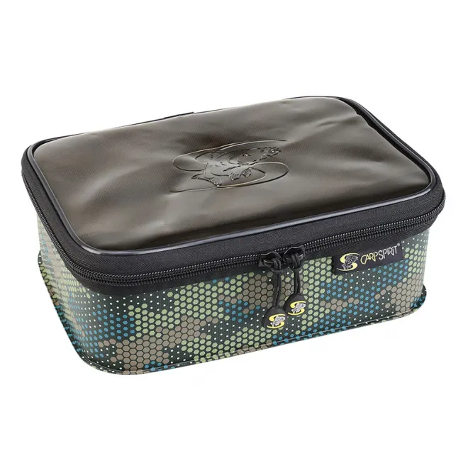 Die Carp Spirit Hydro Box 213 Camo schützt Dein Zubehör zuverlässig vor Wasser, Schmutz und UV-Strahlung. Dank verschweißter Nähte, stabilem EVA-Material und praktischem Netzfach im Deckel bleibt alles sicher verstaut und stets griffbereit – perfekt für Kleinteile, Rig-Tools oder Endtackle.