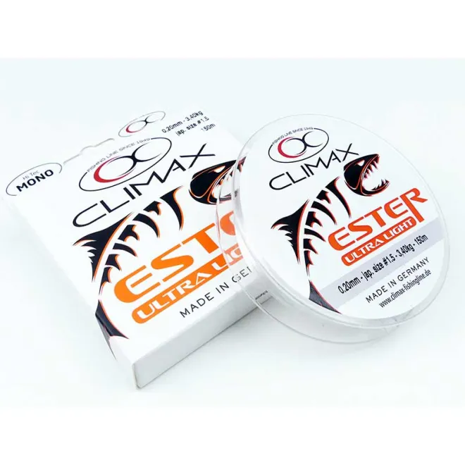 Die Climax Ester U-Light Angelschnur – für ultimative Präzision und Stärke beim Ultra Light Fishing. Gefertigt aus bester japanischer Rohware, nahezu unsichtbar mit ähnlichen Eigenschaften wie Fluorocarbon. Die Ester U-light ist perfekt, um Sie in äußerst dünnen Durchmessern zu fischen, da diese neue Schnur fast keine Dehnung hat, extrem abriebfest ist und eine herausragende Knotenfestigkeit bietet. Zero Stretch! Achte darauf, dass Rute und Rolle auf diese Schnur abgestimmt sind.