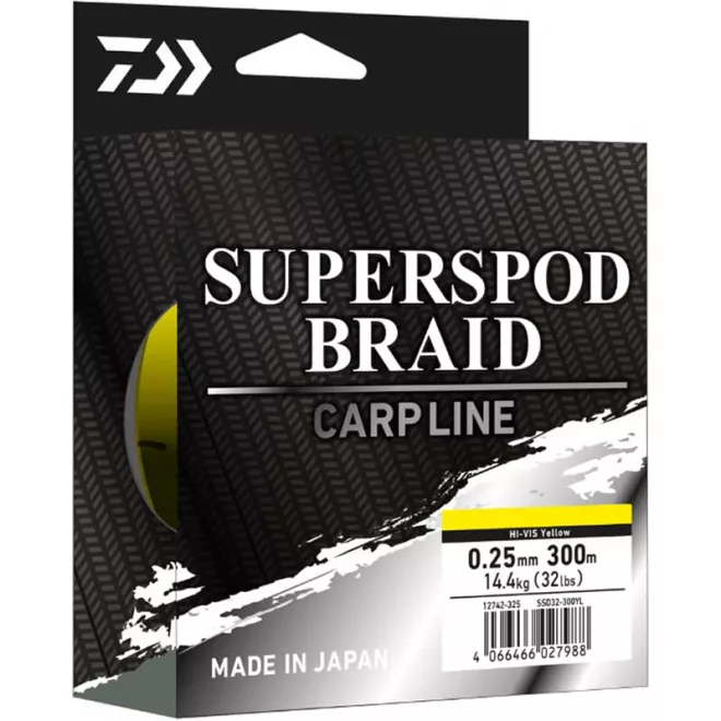 5. DAIWA Superspod Braid Carpline Hi Vis Yellow 300 m 0,25 mm 32 lb