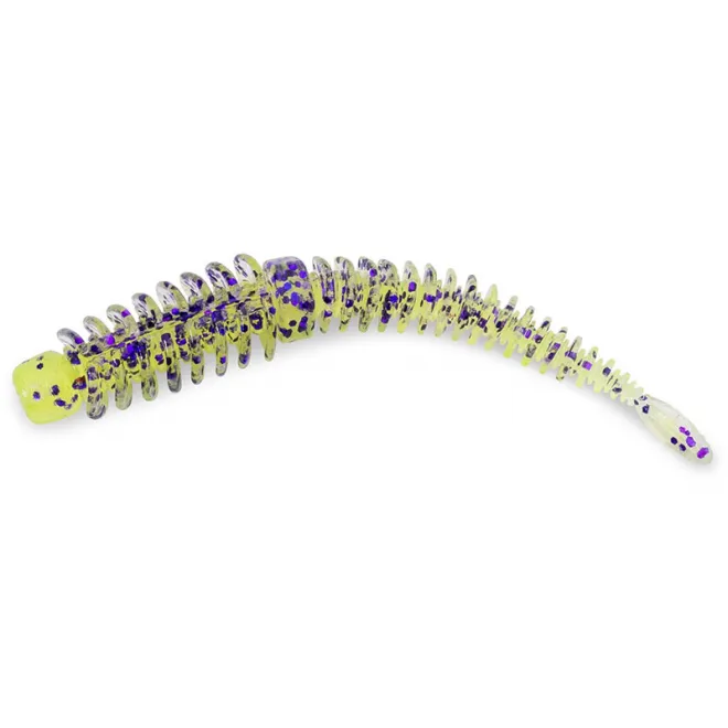Der Ribu Worm besteht eigentlich nur aus einem dünnen, mit "Rippen" besetzten Kern. Dadurch ist der Köder extrem beweglich und lässt sich auf mehrere Arten präsentieren.