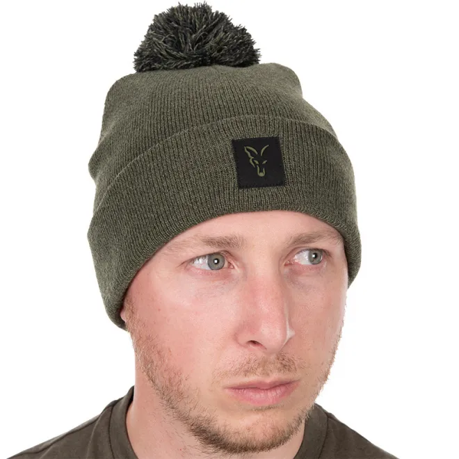 • Grün meliert mit einem kontrastfarbenen schwarzen Bommel