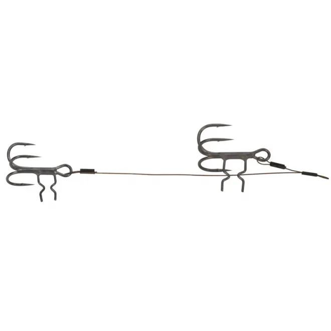 Die Strike Point Double Stinger sind essentiell, wenn mit Gummiködern wie dem Pro Shad oder dem Slick Eel auf Hechte geangelt wird; sie sind mit superscharfen Fox Rage Stinger Drillingen ausgestattet und bauen auf einem knickresistenten 49-fädigen Stahlgeflecht auf.