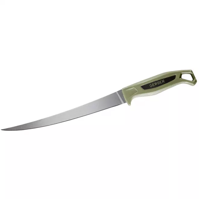 Das Filetieren wird zum Kinderspiel mit dem Filetiermesser GERBER CEVICHE 9. Durch die Mikrostruktur des Griffs aus Polypropylen liegt das CEVICHE 9 selbst bei nassfeuchter Umgebung sicher in der Hand. Das ergonomische Griffdesign unterstützt ein gutes Handling für saubere, scharfe Schnitte. Die 23,3 cm lange Klinge aus rostfreiem 5Cr15MoV-Stahl wird durch die Salt RX Beschichtung hochgradig korrosionsbeständig. Eine Befestigungsöse ermöglicht die Befestigung an der Angelausrüstung. Zum Lieferumfang gehört eine Kunststoffscheide, die über Ablaufschlitze verfügt.