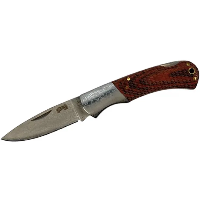 Mit diesem Modell präsentiert Herbertz ein klassisches Taschenmesser in Damastoptik. Die Klinge aus rostfreiem AISI 420 Stahl ist zum leichteren Öffnen mit einem Nagelhau ausgestattet. Ein bewährter Back Lock Mechanismus arretiert die Klinge zuverlässig. Die strukturierten Griffschalen aus Pakkaholz liegen angenehm in der Hand. Eine Fangriemenöse rundet die Ausstattung ab.