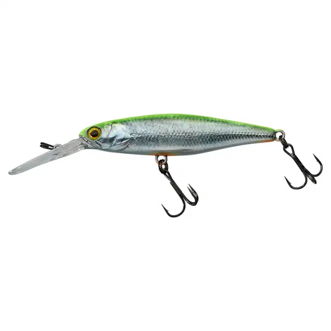 Unser DD SQUIRREL 67 ist nur ein paar Millimeter größer als der SQUIRREL 61, seine längere Tauchschaufel läßt ihn allerdings auf über 2m abtauchen, ideal wenn die Räuber in tieferen Regionen hinter kleinen Beutefischen her sind. Alle anderen positiven Eigenschaften der Squirrel-Familie sind eingebaut, ein perfekter Suspender, der panikartige Fluchten imitiert, sobald man in die lockere Schnur twitcht. Er läßt sich bei klarem Wasser natürlich auch mit Speed einkurbeln, ohne aus der Balance zu geraten und so mancher Barsch schnappt zu, weil er keine Zeit zum 'Nachdenken' hatte.