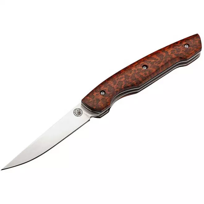 Dieses elegante Gentleman Taschenmesser des französischen Herstellers LUG wird in aufwendiger Handarbeit gefertigt. Die satinierte, 3 mm starke Klinge wird aus rostfreiem 7Cr17MoV hergestellt und bringt es auf 58-59 HRC. Ein Liner Lock arretiert die geöffnete Klinge zuverlässig. Der angenehm in der Hand liegende Griff ist mit passgenauen Schalen aus Schlangenholz versehen, welche auf einer Lage G10 ruhen. Der Heftrücken aus leichtem Aluminium verfügt im oberen Drittel über eine schöne Guilloche Verzierung.