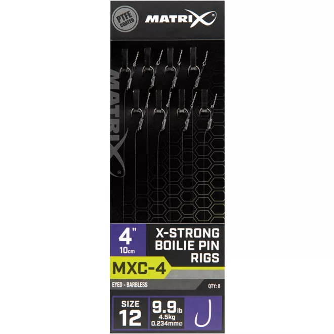 Matrix MXC-4 X-Strong Boilie Pin Rigs 10cm Size 12 Barbless 0,23mm