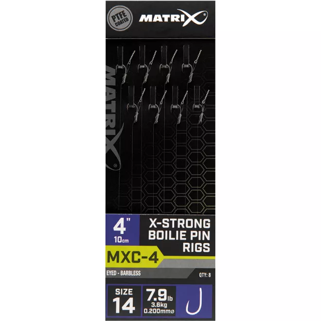 Matrix MXC-4 X-Strong Boilie Pin Rigs 10cm Size 14 Barbless 0,20mm
