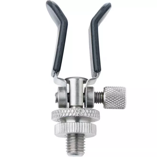 Edelstahl Rutenauflage mit verstellbaren Seitenarmen zur Anpassung an unterschiedliche Durchmesser der Rutenblanks