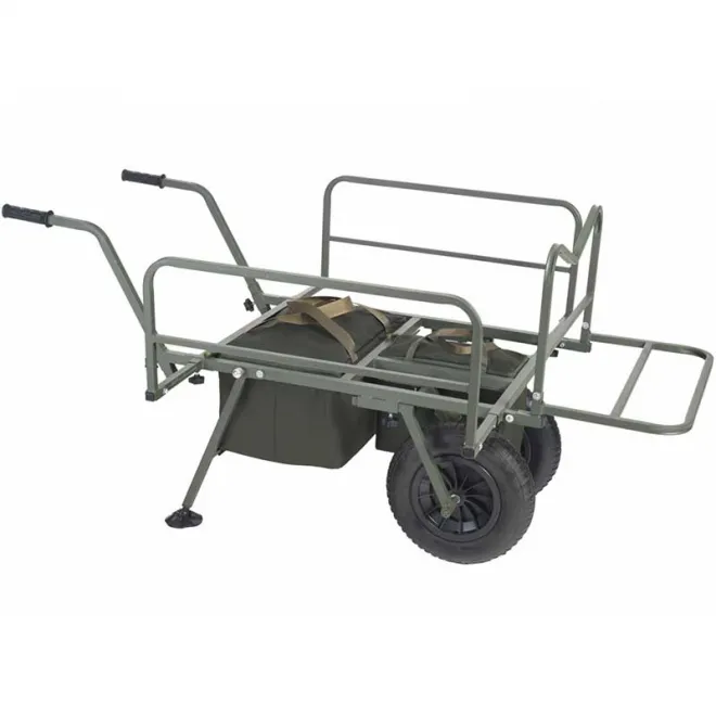 Ein kompromissloses Trolleysystem, das für den Transport der gesamten Ausrüstung zum Angelplatz entwickelt wurde. Der Rahmen ist so konzipiert, dass die größten Taschen im vorderen Bereich ihren Platz finden. Die seitlichen Ausleger sind stufenlos verstellbar und sind so selbst an sperrige Liegen- und Stühle anpassbar. Komfortable und verstellbare Griffe kombiniert mit einem optimierten Schwerpunkt sorgen für eine einfache Handhabung eines voll beladenen Trolley. Falls erforderlich, so ist ein zweites Laufrad schnell und einfach montiert welches zusammen mit 2 Taschen bereits im Lieferumfang enthalten ist.