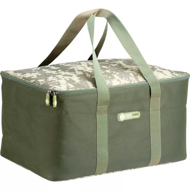 Quadratische, gepolsterte Transporttasche im CamoCODE Design aus B-POL 600D Material. Universell einsetzbar, um diverses an Ausrüstung und Zubehör zu verstauen und griffbereit zu haben. Die Größe der Tasche erlaubt es diese unter unseren Bedchairs zu verstauen, um im Bivvy und besonders im Brolly besser organisiert zu sein und platzsparend aufbauen zu können. Hinzu kommt eine effektive Raumnutzung während des Transportes im Auto.