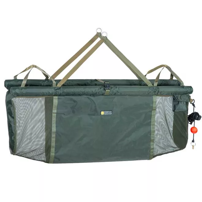 Floating Wiegeschlinge, zum Hältern von Fischen und zum Wiegen. Zum tragen der Schlinge sind separate Handschlaufen angebracht worden, welche um die gesamte Schlinge verlaufen. Ein Extension Strap inkl. Schwimmkörper ist mitgeliefert. Dieser wird in der aufgenähnten kleinen Tasche verstaut wenn er nicht benötigt wird. Die Schwimmkörper der Stangen haben eine sehr hohe Auftriebskraft und verlaufen über die gesamte Länge. Um den Fisch so schonend wie möglich zu hältern, besteht die Floating Schlinge nicht aus geschlossenem Material, sondern es wurde an den Seiten ein schonendes, breites Netz eingearbeitet. Ein schnelles und sicheres Wiegen ist dank der beiden Metallösen zum Einhängen der Waage möglich, da ein seitliches Wegrutschen so nicht möglich ist.