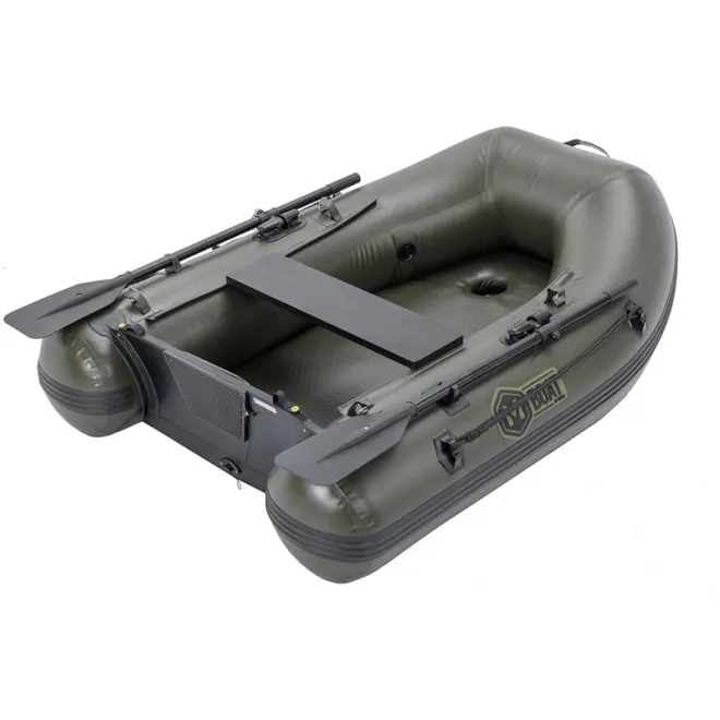 In der Praxis bedeutet dies höhere Geschwindigkeit, einfacheres Handling und geringeren Energieverbrauch beim Antrieb des Bootes. Das verstärkte Material der Pontons erhöht die Pannensicherheit. Der aufblasbare Boden mit doppelter Trittschicht ist nahezu unverwüstlich und harmoniert durch seine grüne Farbe gut mit der Farbgebung des Bootes sowie schwarzen Rudern und anderem Zubehör.