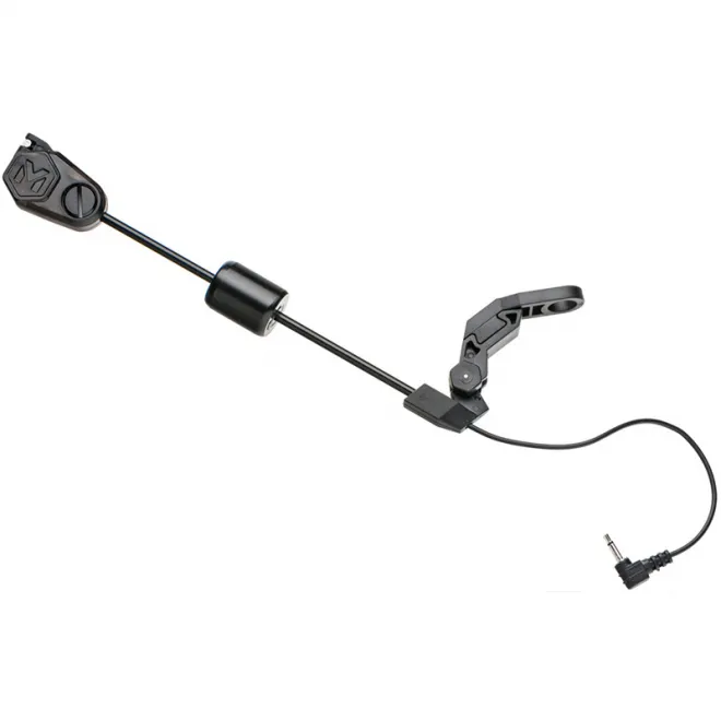 Beleuchteter Swing Arm dessen Design von uns gestaltet wurde. Die Stromversorgung erfolgt direkt über die Bissanzeiger. Sein kristallklarer Körper leuchtet bei einem Biss auf. Der sehr leichte Kopf des Indikators kann bei Bedarf durch ein verschiebbares Gewicht deutlich beschwert werden. Ein zuverlässiger Clip hält die Schnur oder das Geflecht unabhängig von Durchmesser und Gewicht sicher am Kopf des Swing Arms. Gewährleistet ist jedoch die zuverlässige Freigabe der Schnur wenn die Rute bei einem Biss aufgenommen wird und der Swing Arm in der unteren Position festgehalten, wodurch ein Auftreffen auf einen Bankstick oder ein weiteres unwillkürliches Schwingen des Swing Arms verhindert wird.