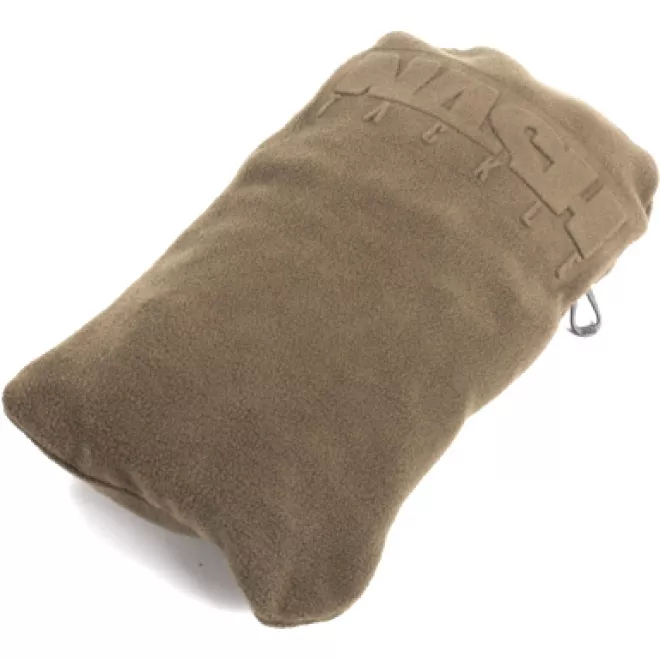 Eine kompakte Wärmeflasche, verpackt in einem „Carpygrünen“ Fleece-Beutel mit geprägtem Nash-Fisch-Logo.