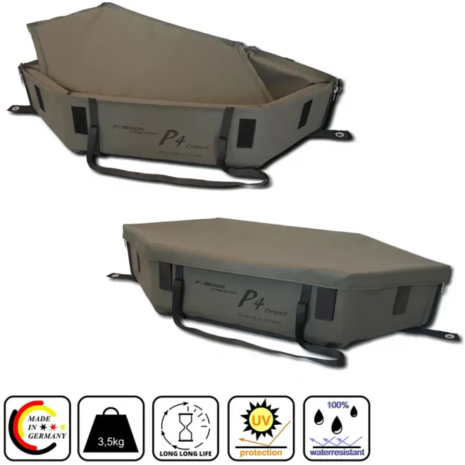 Die P4 Compact ist die kleinere Version unserer P4. Die Außenmaße der P4 Compact sind die Innenmaße der P4. Trotz der etwas kompakteren Maße ist es für diese Matte kein Problem einen Fisch der 30kg Klasse sicher aufzunehmen. Mit Ihren 3,5kg Gesamtgewicht ist sie auch ein absolutes Leichtgewicht. Material und Verarbeitung sind bei allen P4 Modellen gleich. Sie gehört somit zu den besten, langlebigsten Matten am Markt. Wer Besitzer einer P4 Compact ist braucht sich viele Jahre um eine Abhakmatte keine Gedanken mehr zu machen. Die absolute Wasserdichte und der Einsatz eines Spezialschaumstoffes in den Seitenwänden garantieren der Matte die Formstabilität über viele Jahre.