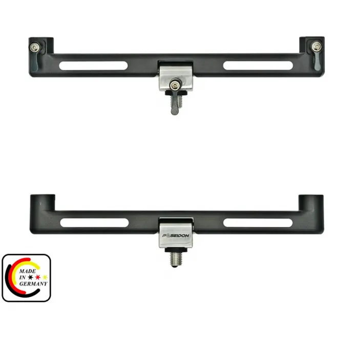 Der AA Buzzer Bar ist aus einem Stück hochfestem Aluminium gefräst und pulverbeschichtet. Alle anderen Parts sind aus Edelstahl gefertigt. Die Inserts für Bißanzeiger und Rutenhalter sind aus Edelstahl. Über einen Klemmhebel am Buzzer Bar können diese unlösbar befestigt werden. Das Technoline Insert ist kompatibel mit dem Technoline Gewindeadapter. Somit ist bei Bedarf ein einfacher Wechsel zwischen Buzzer Bar, Bankstick oder Rod Pod möglich.