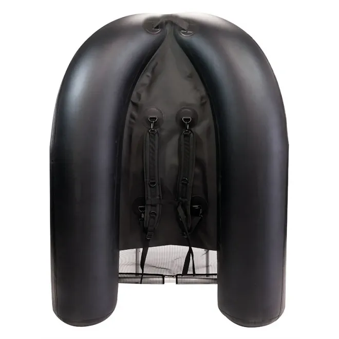 Das Rapala FT150 Rapala Float Tube aus hochfestem 0,7-mm-PVC ist für den begeisterten Bellyboat-Angler konzipiert, der Komfort und technische Finessen sucht. Der aufblasbare Sitz bietet zusätzlichen Auftrieb und eine höhere Sitzposition. Die 2 geräumigen Taschen sind groß genug, um jeweils 2 Plano 3700-Boxen und andere Utensilien aufzunehmen. Ein vorderer Klettverschluss lässt den Angler bis zu 4 Ruten sicher transportieren. Durch die leicht abnehmbaren Gurte kann das Float Tube bequem auf dem Rücken transportiert werden, um die Angelstelle zu wechseln. Das Design ist schlauchlos, so dass es leicht zu befüllen und zu entleeren ist. Lieferung inklusive Pumpe, Tragetasche und Reparaturset.