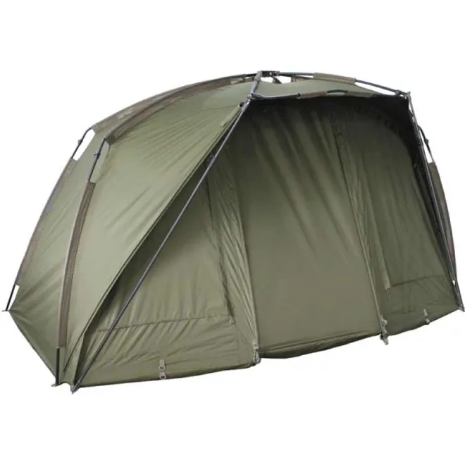 Ein großer Bonus für Reisen ins Ausland ist die zusätzliche "Clip in" oder "Zip in" Heady-Duty-Bodenplane, die auch eine "Fold Back Tür Eingangsklappe", halten den Bodenbereich trocken und sauber. Das Bivvy verfügt außerdem über eine an- und abzippbare Frontplatte mit Mozzi-Seitenfenstern und einem vollständig anpassbaren Fronttürsystem. Zu den weiteren Vorteilen gehören Innentaschen vorne und hinten, ein grünes oder durchsichtiges Fenster an der Vordertür sowie Drei-Wege-Lüftungsöffnungen an der Rückseite, die von der Innenseite des Bivvys aus geöffnet werden können. Vier Abstandshalter für die Belüftung, ein übergroßer Kompressionssack, zwei 48-Zoll-Sturmstangen mit Schnellkupplung, Sturmleinen und ein Satz hochbelastbarer T-Pegs runden das Paket ab