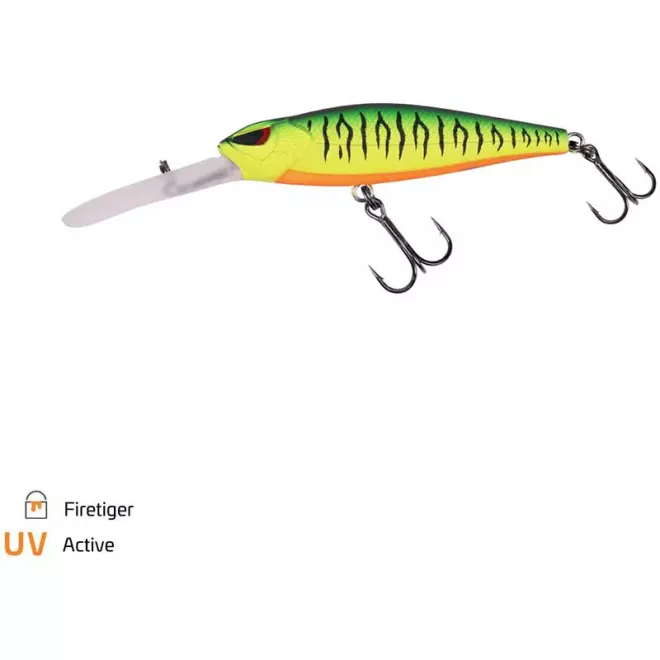Dieser Köder ist ein Suspender, der bei Einholpausen auf der Stelle stehen bleibt und quasi schwebt. Haupt-Zielfisch dieser 6 cm langen und 1,8 m tief tauchenden Hitch-Version ist der Barsch.