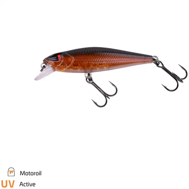 Einfach eingekurbelt weist der Hitch ein ebenfalls attraktives Wobbeln auf. Dieser Köder ist ein Suspender, der bei Einholpausen auf der Stelle stehen bleibt und quasi schwebt. Haupt-Zielfisch dieser 6 cm langen und 0,6 m tief tauchenden Hitch-Version ist der Barsch.