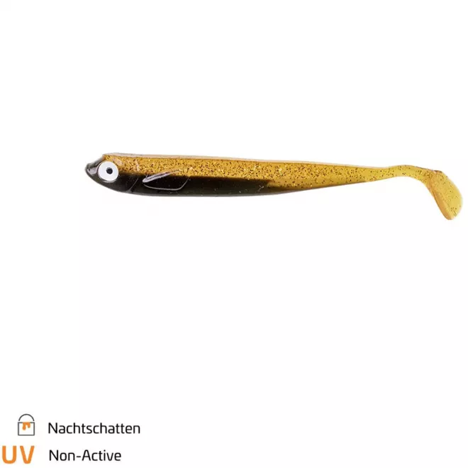 Das Hauptaugenmerk des ZANDER Gummi 12 cm liegt in seinem hochfrequenten Lauf bei sehr geringer Druckwelle, wobei sein Körper wie ein Strich durchs Wasser läuft. Das kleine Low-Action-Paddel reagiert auf den kleinsten Zug, sodass der ZANDER Gummi in 12 cm Länge auch auf leichten Köpfen bereits in der Absinkphase läuft. Sein Material ist zudem weich, aber dennoch flexibel. Somit übersteht dieser Gummifisch einige Attacken und Drills. Diese hohe Flexibilität sorgt für ein einfaches Einsaugen und damit deutlich verbesserte Bissverwertung.